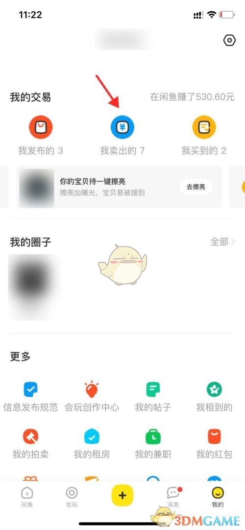 1、首先,打開閑魚app,進(jìn)入“我的”頁面,點(diǎn)擊“我賣出的”選項(xiàng)。