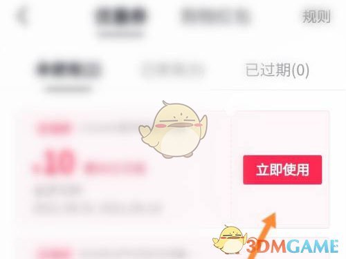 3、在卡券列表中,你會(huì)看到自己購(gòu)買(mǎi)的餐飲券,點(diǎn)擊【立即使用】按鈕即可。