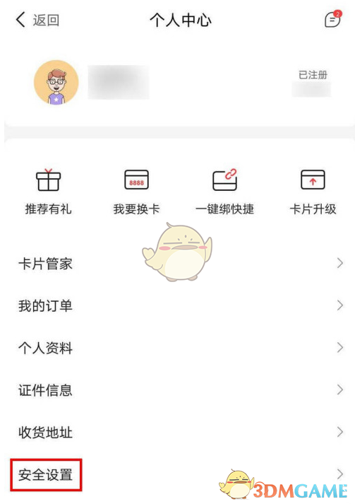 2、進入用戶中心后,選擇“安全設(shè)置”選項;