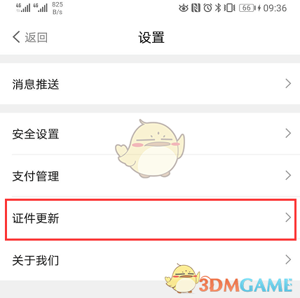 3、在設(shè)置頁(yè)面中,找到并點(diǎn)擊【證件更新】。