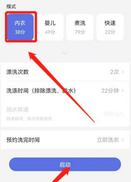 3、在模式頁面中,根據(jù)需要選擇適合的洗衣程序,然后點(diǎn)擊啟動(dòng)。