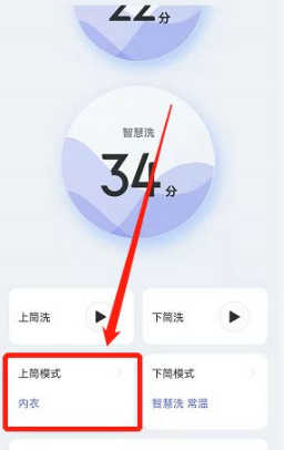 2、進(jìn)入洗衣機(jī)頁面后,選擇【上筒模式】,然后點(diǎn)擊進(jìn)入該模式。