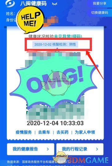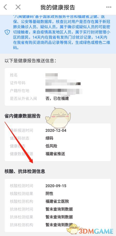 3、在下方的界面中,您會看到箭頭所指位置顯示您的核酸檢測結(jié)果。