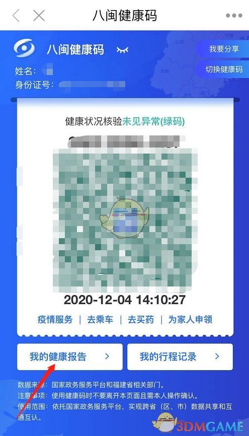 2、接著,點(diǎn)擊頁面中的“我的健康報告”按鈕。