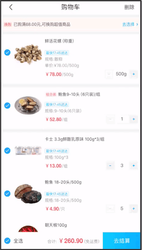 3、選擇完商品后,進(jìn)入購(gòu)物車并點(diǎn)擊去結(jié)算。