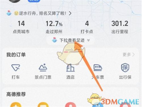 1、首先,打開高德地圖,進入“我的”頁面,然后下拉查找“足跡”選項。