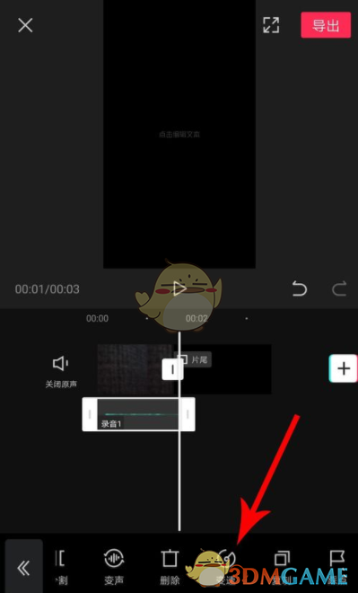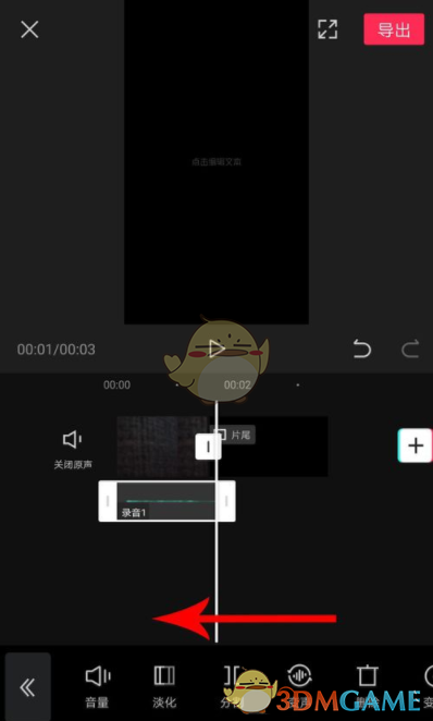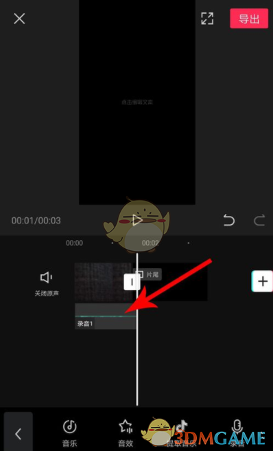 4、錄音保存完成后,返回視頻編輯頁面,然后點擊“錄音1”。