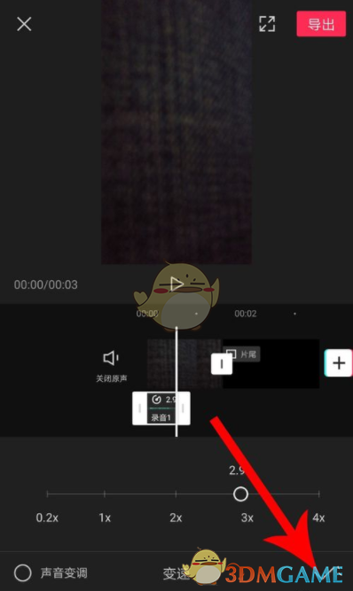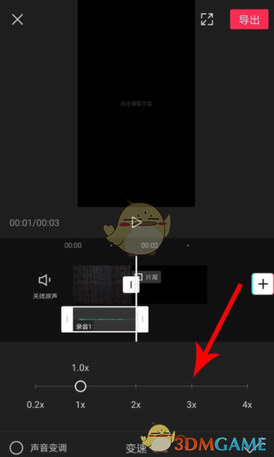 6、進(jìn)入變速設(shè)置頁面后,點擊“3X”選項,錄音的播放速度將變?yōu)?倍速。設(shè)置完成后,點擊“√”保存即可。