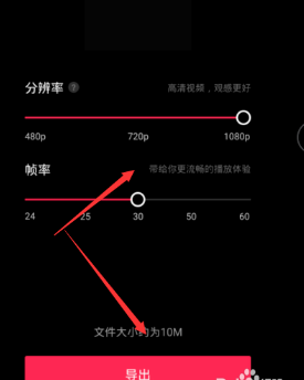 6、編輯完成后,點(diǎn)擊右上角的導(dǎo)出按鈕,選擇合適的分辨率進(jìn)行導(dǎo)出。