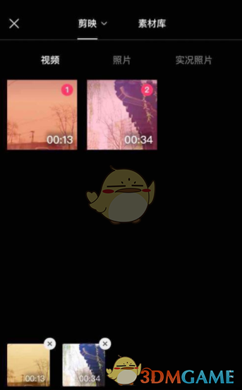 2、接著,選擇你想要合并的兩段視頻,并點擊底部的“添加”按鈕。
