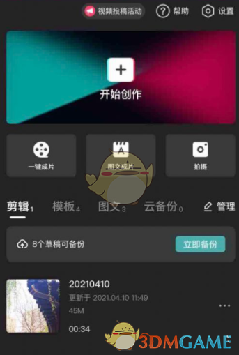 1、首先,打開剪映app,并點擊屏幕上方的“開始創(chuàng)作”按鈕。