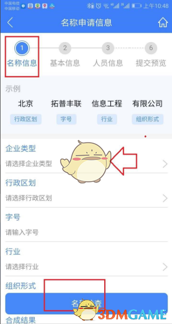 3、在該頁面,依次填寫企業(yè)名稱相關(guān)信息,點擊“名稱檢查”以確保名稱不重復(fù),然后點擊“下一步”。