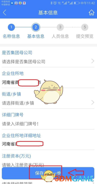 4、接著進(jìn)行公司基本信息的注冊審核,填寫準(zhǔn)確的企業(yè)資料,并點擊“下一步”。