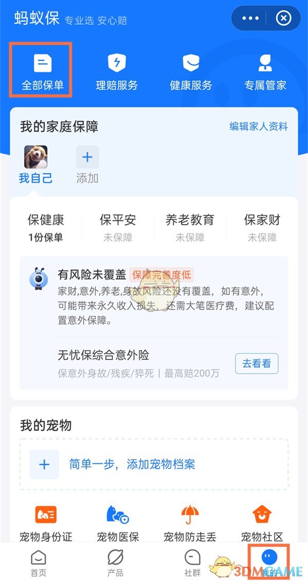 2、然后在“我的”頁面選擇“全部保單”選項。