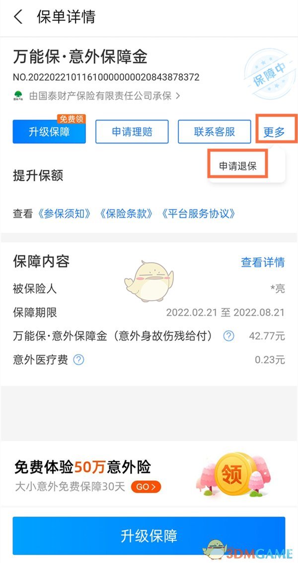 5、點擊“更多”選項,選擇“申請退?!?,然后填寫退保原因即可。