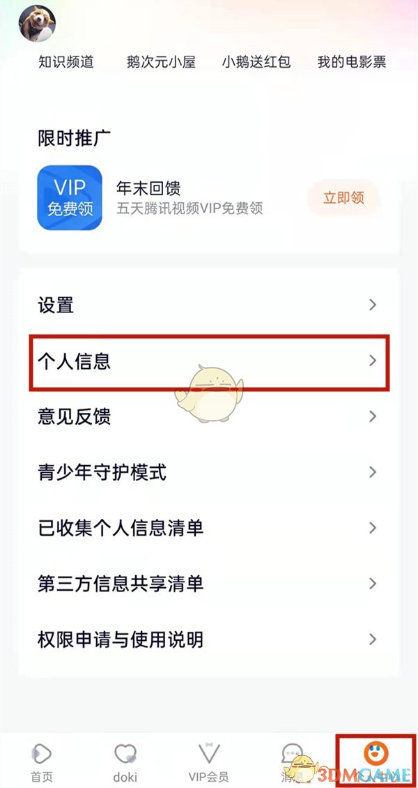 1、首先進(jìn)入個人中心,然后點擊“個人信息”選項。