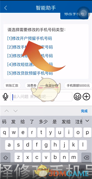 2、進入客服頁面后,發(fā)送修改手機號的請求,并選擇需要修改的手機號類型,比如修改開戶時預(yù)留的手機號,