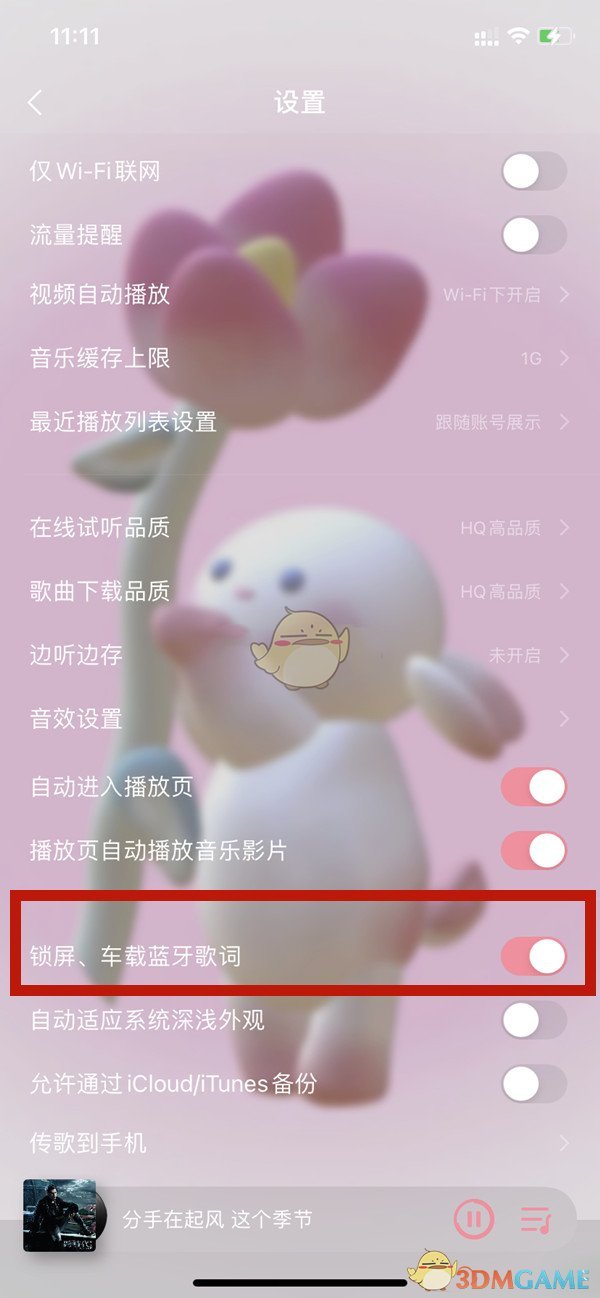 2、在設(shè)置頁(yè)面,找到【鎖屏、車載藍(lán)牙歌詞】選項(xiàng),開(kāi)啟其右側(cè)的開(kāi)關(guān)。