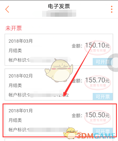 3、此時會顯示可以申請開發(fā)票的月份,選擇需要開發(fā)票的月份即可,如下圖所示。