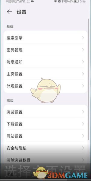 2、在設(shè)置中找到并點(diǎn)擊“主頁設(shè)置”選項(xiàng)。