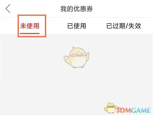 2、然后點擊“未使用”界面,便可以看到收到的優(yōu)惠券。