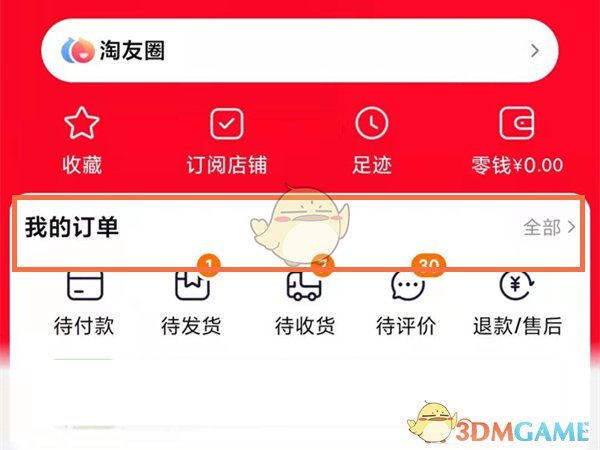 1、首先打開淘寶App,進(jìn)入“我的淘寶”界面,點(diǎn)擊“我的訂單”。