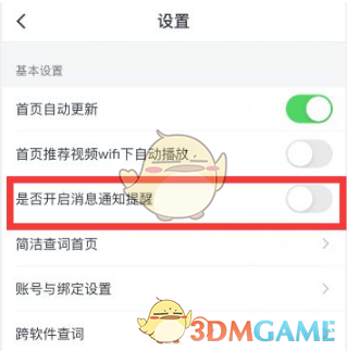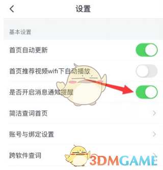 3、進(jìn)入設(shè)置后,找到“是否開(kāi)啟消息通知提醒”選項(xiàng),并點(diǎn)擊右側(cè)的開(kāi)關(guān)按鈕。