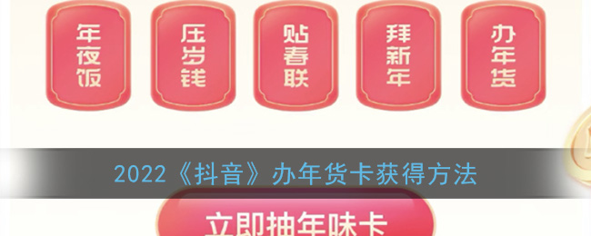 抖音2022年春節(jié)集卡活動(dòng)將于2022年1月25日正式啟動(dòng),屆時(shí)小編會(huì)為大家及時(shí)更新獲取辦年貨卡的詳細(xì)方法,請(qǐng)大家留意!