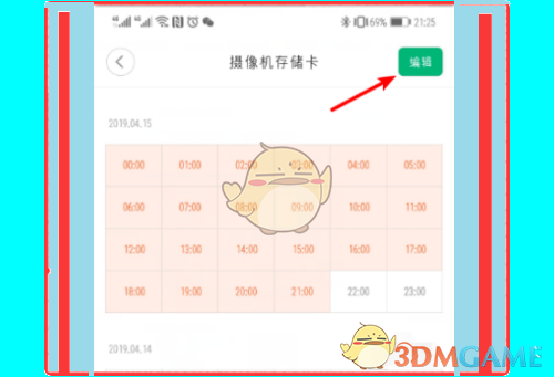 5、進(jìn)入存儲卡后,您將看到攝像頭錄制的時間段,點擊右上角的“編輯”按鈕。