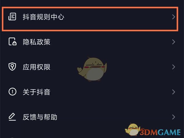 2、進入設置后,點擊“抖音規(guī)則中心”。