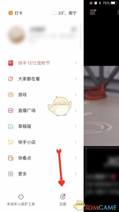 1、首先打開快手app,點擊左上角的三條橫線圖標,進入設(shè)置界面。