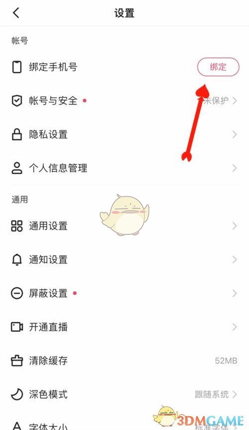 2、在設(shè)置界面中找到“綁定手機號”選項,點擊右側(cè)的綁定按鈕。