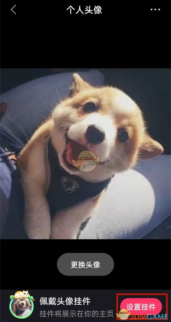 3、在頭像頁面,找到并點(diǎn)擊“設(shè)置掛件”選項(xiàng)。