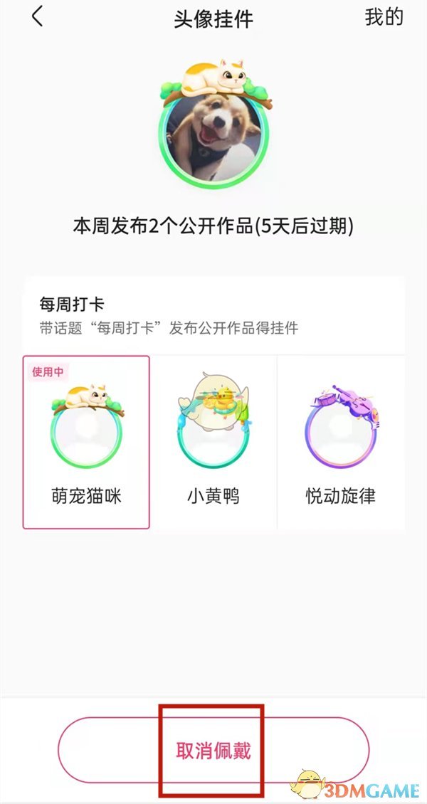 4、最后,點(diǎn)擊“取消佩戴”按鈕即可關(guān)閉頭像掛件。