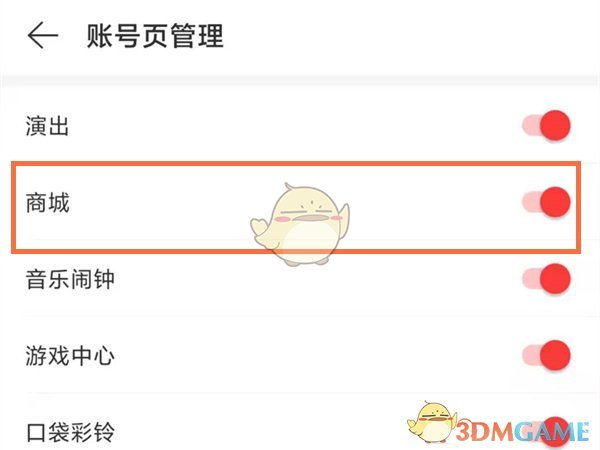 3、在賬號管理頁面中,開啟“商城”開關(guān),然后在個人信息頁面的音樂服務(wù)選項中,即可找到商城入口。
