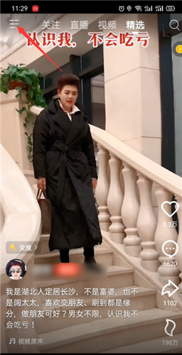 1、首先,打開抖音火山版,點(diǎn)擊界面左上角的三條橫線,