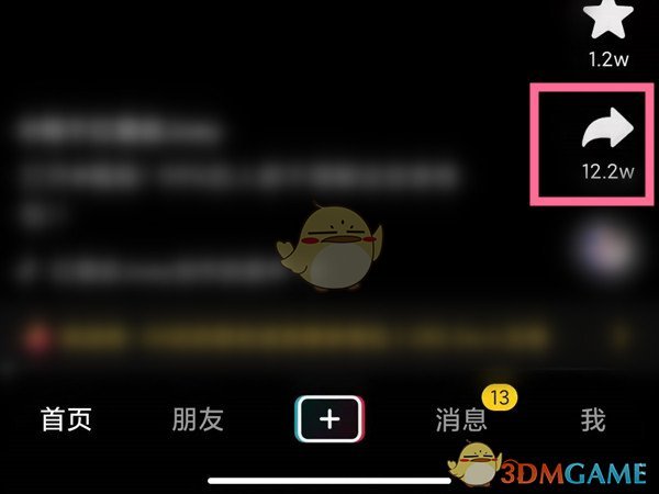 1、首先,打開抖音app,在瀏覽視頻的頁面中,點擊視頻下方的分享圖標(biāo)。