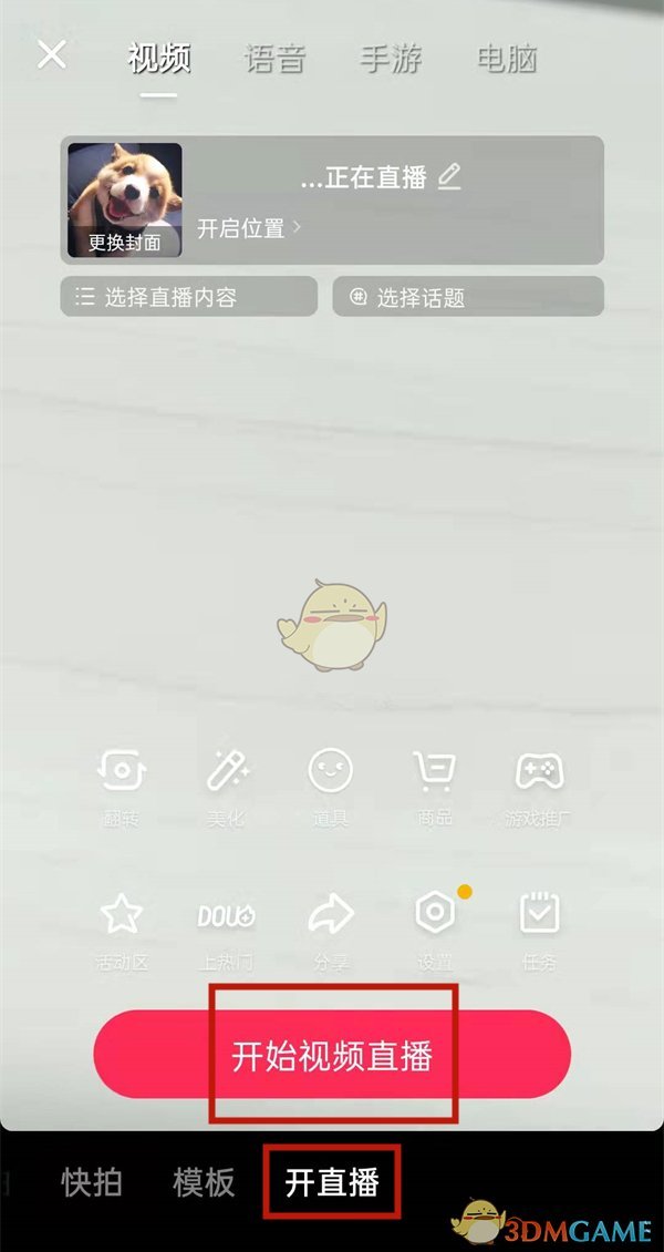 2、進(jìn)入直播界面后,點(diǎn)擊“開啟視頻直播”按鈕。