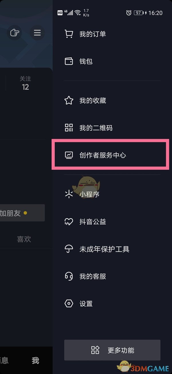 1、首先在“我”頁面點(diǎn)擊右上角的三橫線圖標(biāo),進(jìn)入【創(chuàng)作者服務(wù)中心】。