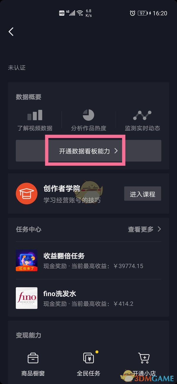 2、然后點(diǎn)擊【開通數(shù)據(jù)看板功能】。
