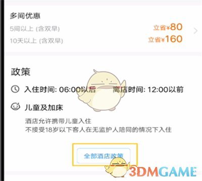 2、選擇一個(gè)你想預(yù)定的酒店,向下滑動(dòng)頁面,點(diǎn)擊“查看所有酒店政策”選項(xiàng)。