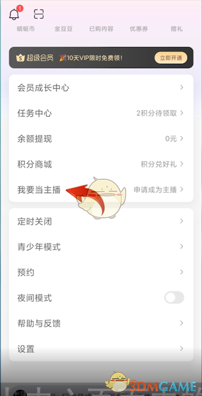 1、首先,打開蜻蜓FM主界面,進(jìn)入個人中心,然后點(diǎn)擊“我要當(dāng)主播”,在這里你可以查看作為主播能享受的各項(xiàng)福利。