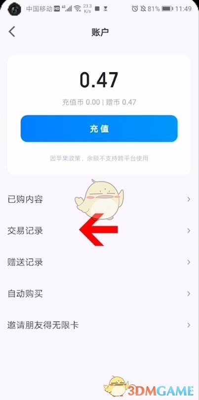 3、接著選擇“交易記錄”選項(xiàng),