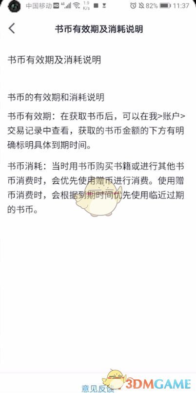 3、當(dāng)你用書幣購買時(shí),系統(tǒng)會(huì)首先使用贈(zèng)送的書幣。如果有多個(gè)贈(zèng)幣可用,系統(tǒng)會(huì)優(yōu)先使用那些即將過期的書幣。