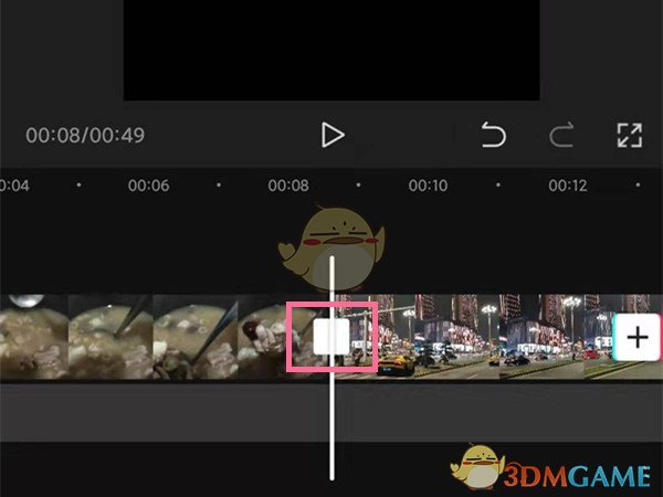 2、選擇你想要拼接的兩段視頻,點(diǎn)擊它們之間的白色分隔條。