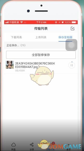 5、在傳輸列表的【保存至相冊(cè)】欄目中,你就能看到剛剛下載的圖片了。