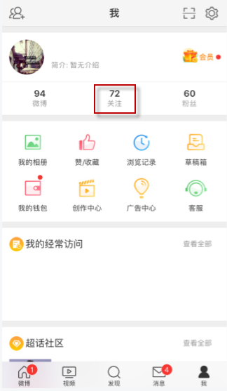 1、首先,打開(kāi)微博APP,進(jìn)入“我的”頁(yè)面,并點(diǎn)擊“關(guān)注”選項(xiàng);