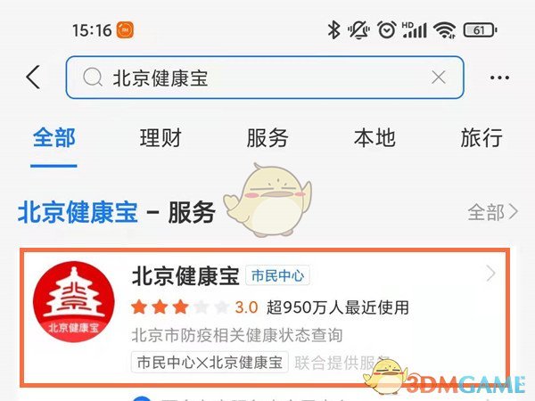 1、首先,進(jìn)入支付寶并打開北京健康寶服務(wù)頁面。