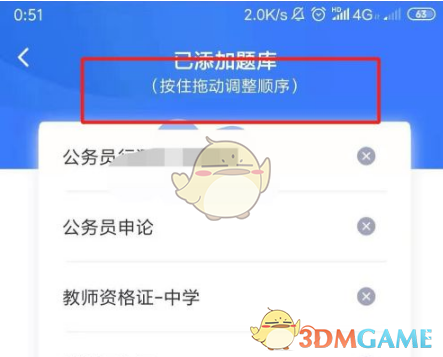 2、上方會(huì)顯示當(dāng)前已加入的題庫,用戶可以拖動(dòng)調(diào)整其順序。