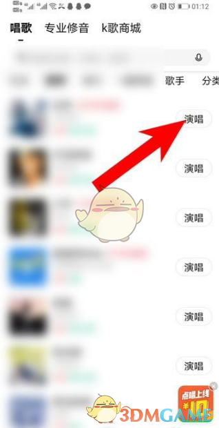 1、首先進入唱吧,點擊你想演唱的歌曲。